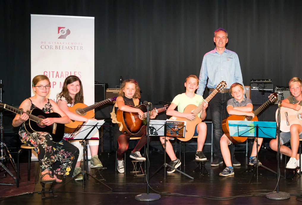 Naast individuele lessen bieden we ook groepslessen aan, waarbij samenspel een belangrijke rol heeft. Je leert samen te spelen en elkaar aan te vullen: terwijl de ene persoon de melodie speelt, zorgt de ander voor de akkoorden. Met toevoeging van zang, drums en bas wordt de muziek steeds rijker en krijgt het een voller geluid.